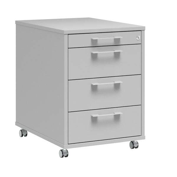 Skuffesektion i kontormøbelserien DNA, med 4 skuffer og med udvendig bredde x dybde x højde, 432 x 580 x 595 mm. Skuffesektionen har lys grå kabinetfarve i kombination med lys grå skuffefronter.Specifikationer:
