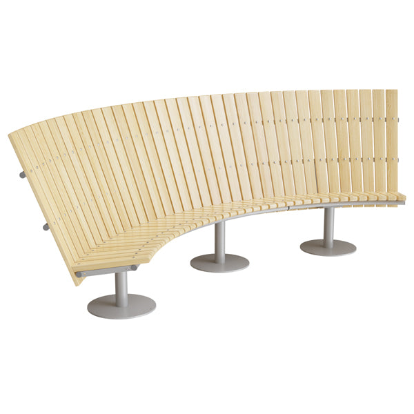 Cirkum sofa med høj ryg og lakeret understel i stål. Sæde i massiv birk, eg eller birk laminat. Findes som lige eller buet model. Cirkum sofa kan sammenkobles. Leveres med forboret plade til gulvmontering.Kun egnet til indendørs brug.Specifikationer: