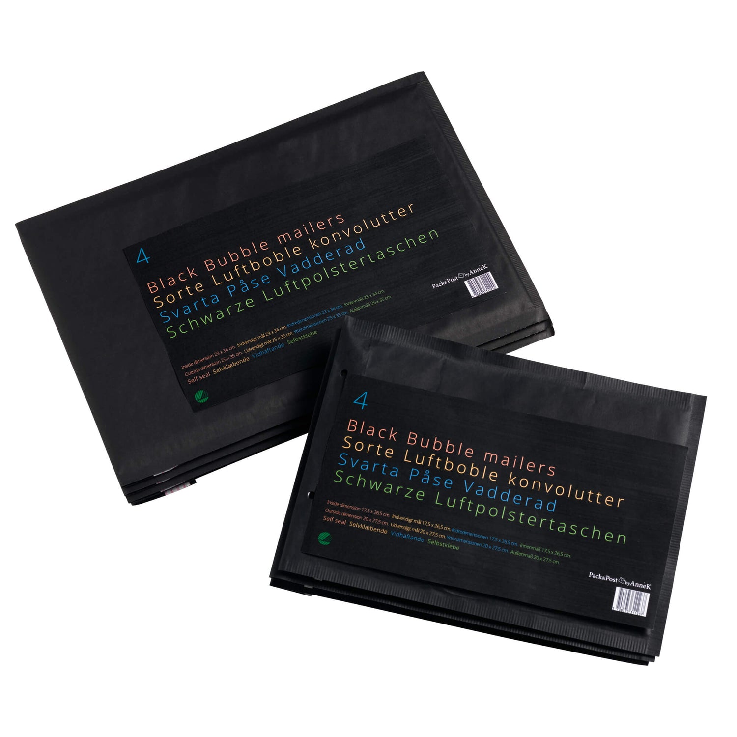 Sort Boblekuvert 250 x 350 mm., 4 stk.