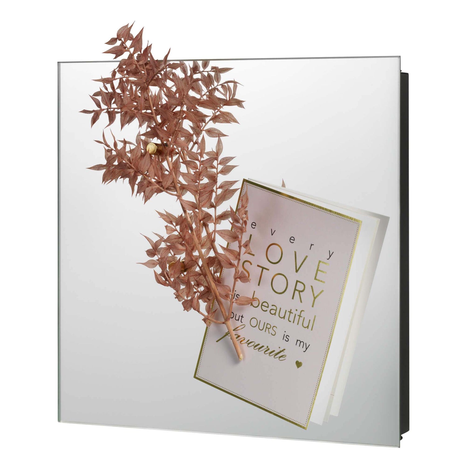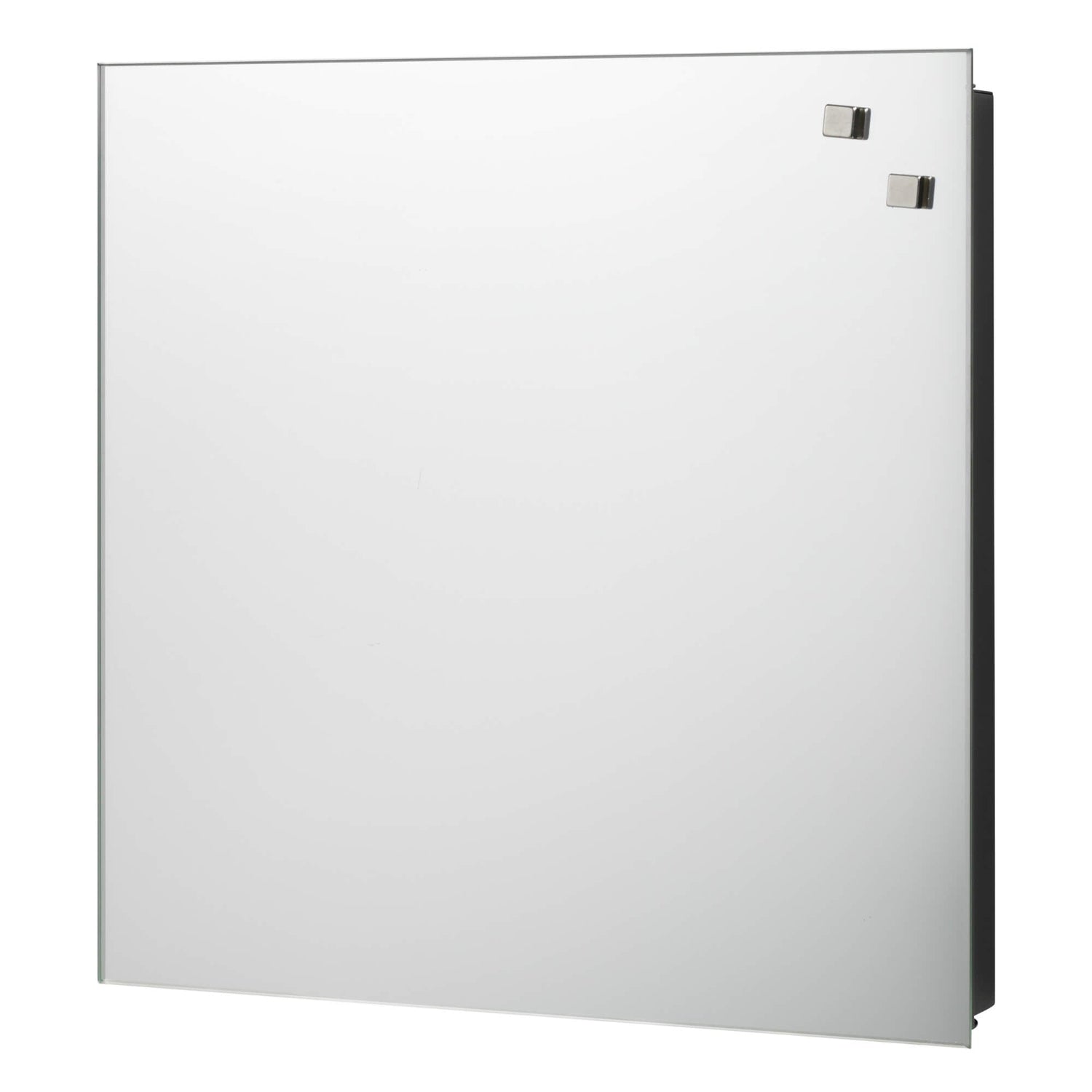 Spejl magnetisk nøgleskab Smart nøgleskab med spejl. Nøgleskabet er fremstillet af sort metal og har en venstrehængt låge med magnetisk spejl. Nøgleskabet er derfor en perfekt tilføjelse til entréen i hjemmet. Nøgleskabet er designet til praktisk og overskuelig opbevaring af nøgler og har plads til 50 nøgler på de indvendige kroge. Du kan nemt organisere dine nøgler ved at tilføje labels eller skrive med en hvid kridt marker ved hver krog for at angive, hvad nøglen bruges til. Skabet har en 3-i-1 funktion, da lågen også kan anvendes som opslagstavle og spejl. Du kan sætte huskesedler, fotos og meget mere på lågen med Super Stærke magneter eller skrive direkte på glasset med en kridt marker eller en almindelig whiteboard marker. Når teksten er tør, kan den nemt viskes ud igen med en tavlesvamp eller en tør klud. Magneter og markere medfølger ikke. Til grundig rengøring skal du bruge tavlerens eller almindeligt glaspudsemiddel og en blød klud. Det er vigtigt, at du bruger en blød klud for at undgå at ridse spejlet. Nøgleskabet måler 30 x 30 cm. Dybde 5 cm.Med dette multifunktionelle nøgleskab får du ikke kun en elegant og praktisk løsning til nøgleopbevaring, men også et dekorativt element til din entré. Gør hverdagen lidt mere organiseret og stilfuld - køb dit magnetiske nøgleskab med spejl allerede i dag. Husk, et ryddeligt hjem er et lykkeligt hjem!