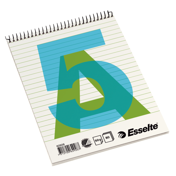 Blok med topspiral. God, træfri papirkvalitet. Ideel skriveblok - blækket fordeler sig jævnt uden at klatte. 8 mm liniering. Forside i 250g karton. Kraftigt bagpap giver god støtte, når der skrives på blokken. Svanemærket tryksag, 4041 0675.