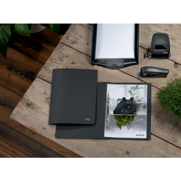Iøjnefaldende spiral clip mappe i premium kvalitet med speciel spiralclip-mekanisme til nem dokumentopbevaring og læsning. Lavet af 100% recirkuleret karton, 100% recirkulerbar og med Blå Engel miljøcertificering. Denne robuste og praktiske spiral clip mappe supplerer perfekt andre produkter fra Leitz Recycle-serien og er lavet til at holde. Moderne og stilfulde kontorartikler, som vil passe ind på kontoret og i hjemmet.