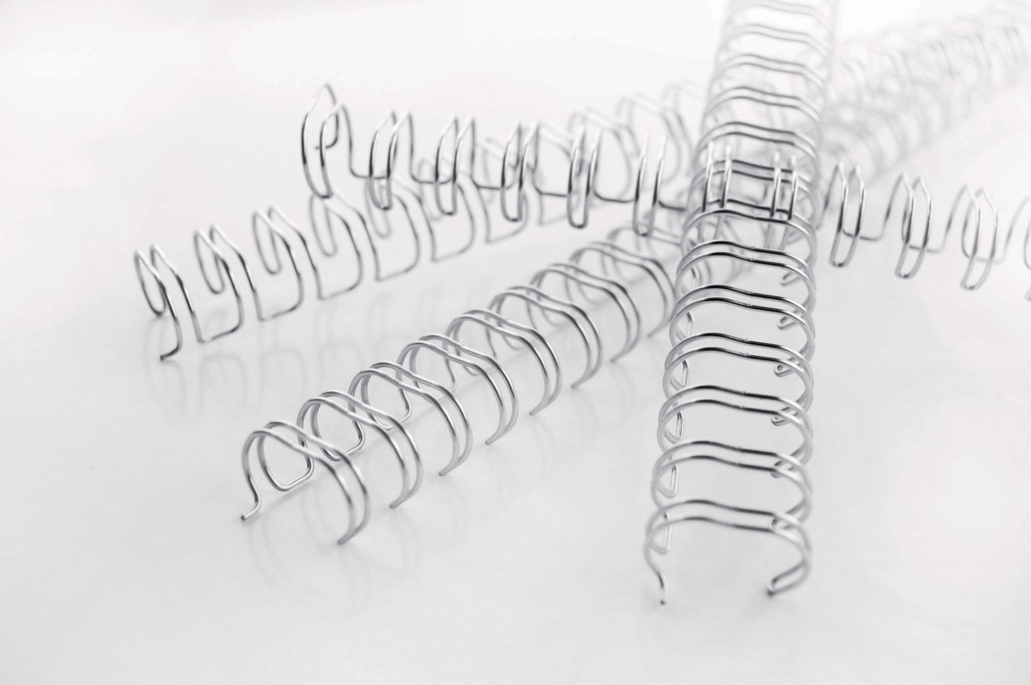 Indbinding bliver ikke nemmere! Passer sammen med alle WireBind maskiner. WireBind indbindingswire giver kvalitet til dine dokumenter, der kræver permanent indbinding. Når sikret kan siderne roteres 360 grader og ligge fladt ved fotokopiering. 9.5 mm, 34-system wire. Indbinder op til 85 sider. A4 format. Pakkestørrelse: 100. - Professionel: WireBind er et premium valg for en helt igennem professionel finish - Holdbar: Hårdfør metal WireBind konstruktion indbinder dokumenter fast, sikrer siderne og er en meget holdbar løsning - Nøjagtige afstande for at sikre mod papirbevægelse, når der indbindes - Dobbelt-løkke wire-konstruktion minimerer bøjning og giver større indbindingsstabilitet - Fleksibel: Ideel til både firkantede eller runde 3:1 system huller - Sikre: Ideel til fortrolige dokumenter