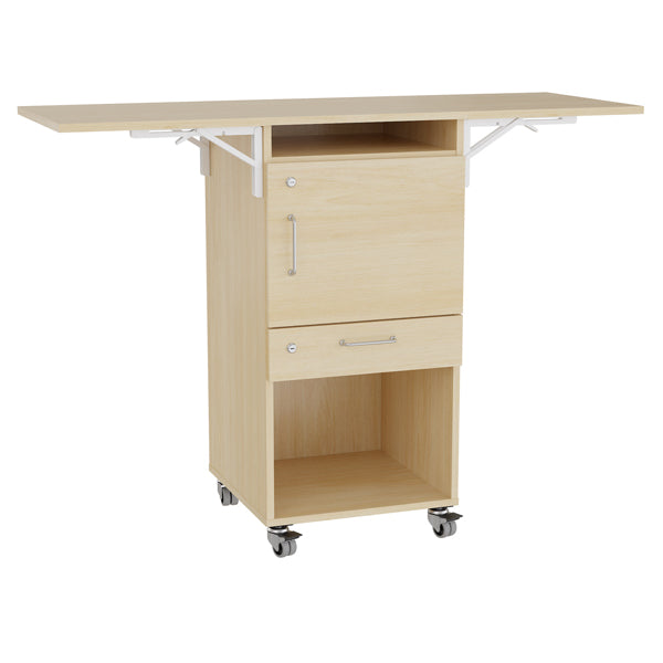 Ståbord Stig laminat med 4 låsbare hjul, låsbar dør og skuffe, højre og venstre klap.