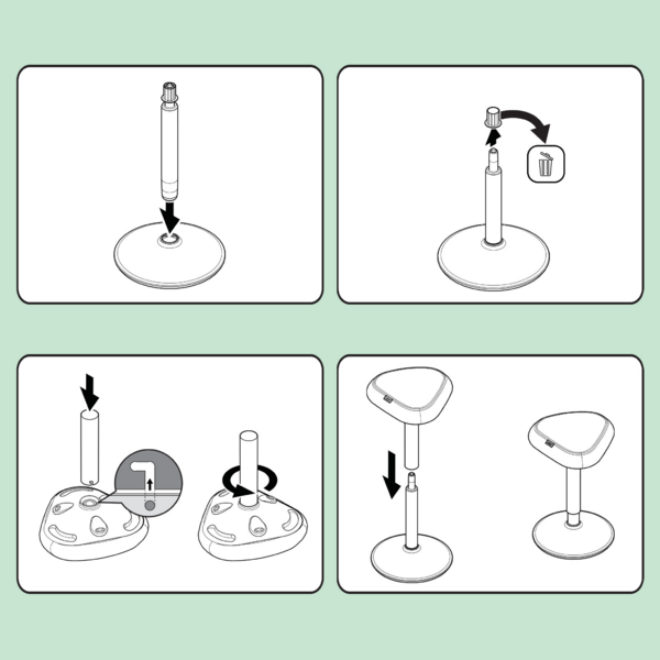 - Den afrundede balancebase opfordrer til gyngende og drejende bevægelser for at styrke din ryg og core, mens du arbejder ved dit skrivebord