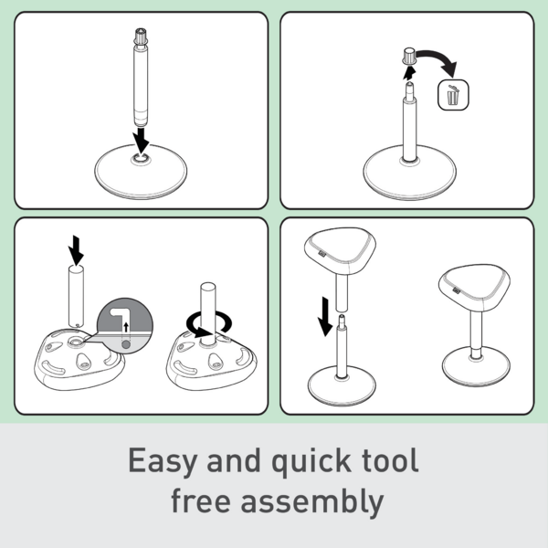 - Den afrundede balancebase opfordrer til gyngende og drejende bevægelser for at styrke din ryg og core, mens du arbejder ved dit skrivebord