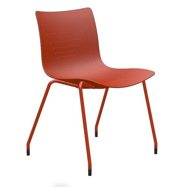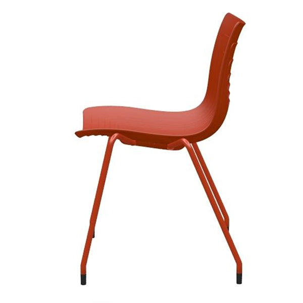 5 Waves stolen er en tiltalende og meget robust stol, her i rød udførelse med røde stoleben. Det komfortable sæde er produceret i 100% PP-plast, støbt i en lag, som kombinerer komfort, stabilitet og design. Stoleben er i helsvejst Ø18mm stålrør, som er miljørigtig pulverlakeret og har gode gulvbeskyttere i plast.