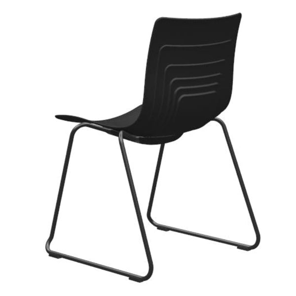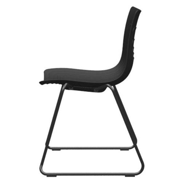 Det komfortable sæde er produceret i 100% PP-plast, støbt i lag, som kombinerer komfort, stabilitet og design. Stoleben er i helsvejst Ø18mm stålrør, som er miljørigtig pulverlakeret og har gode gulvbeskyttere i plast.
