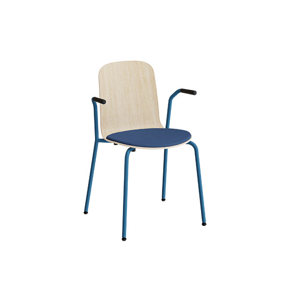 Stol Add, stabelbar med armlæn og formstøbt skal belagt med hvidpigmenteret eg og sædehynde med kraftig betræk. Lakeret stålstel med justerbar gulvbeskyttelse i nylon. Anbefales til kantiner og opholdsrum.
