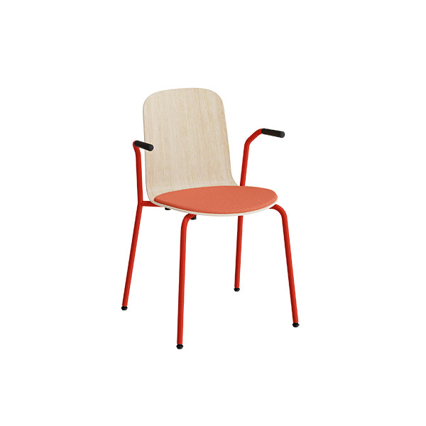 Stol Add, stabelbar med armlæn og formstøbt skal belagt med hvidpigmenteret eg og sædehynde med kraftig betræk. Lakeret stålstel med justerbar gulvbeskyttelse i nylon. Anbefales til kantiner og opholdsrum.