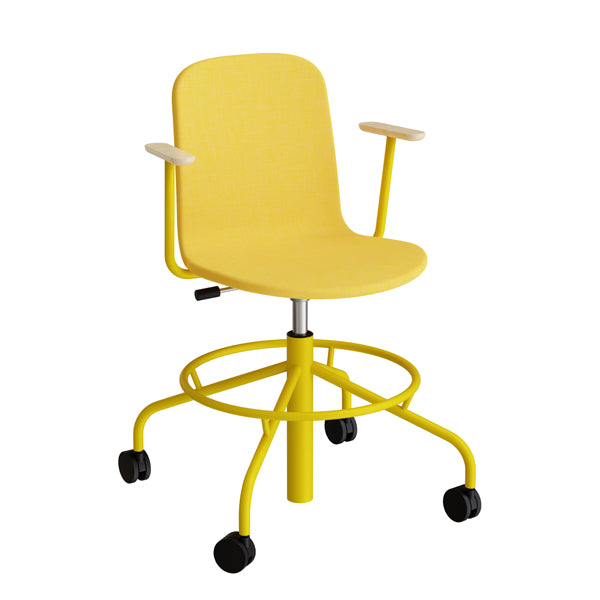 Stol ADD 5903, Fodkryds, hjul og armlæn, Helbetrukket gult tekstil, Gult stel