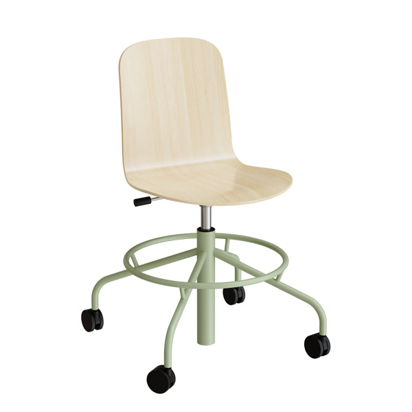 Stol ADD 5903, Fodkryds og hjul, Hvidpigmenteret eg laminat, Grønt stel