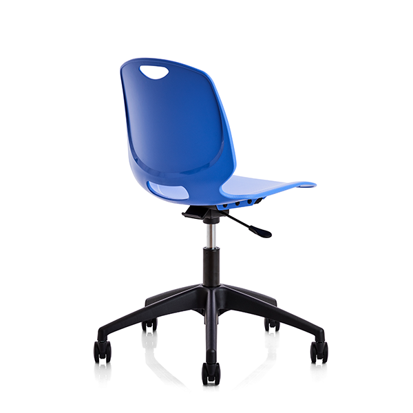 Stol Amigo med gennemfarvet siddeskal i polyproylen. 5-fodskryds i sort nylon med hjul. Justerbar i højden med gasregulering og drejeligt sæde. Anbefales til højtrin og gymnasiet.