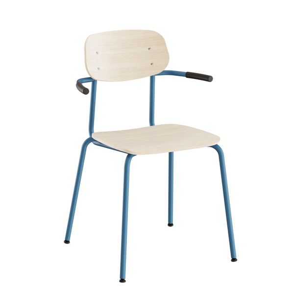 Atlas stol med formstøbt sæde og ryg beklædt med højtrykslaminat i hvidpigmenteret eg og stel af pulverlakeret stål. Stolen er stabelbar og har rygstøtte, en fin detalje som også fungerer som en integreret taskekrog. Leveres med leddelt gulvbeskyttelse med nylonoverflade som standard. Gulvbeskyttelse med filtoverflade fås som et alternativ til et mere stille miljø. Atlas 2111 passer godt som elevstol til højtrinnet og gymnasiet eller som kantinestol.