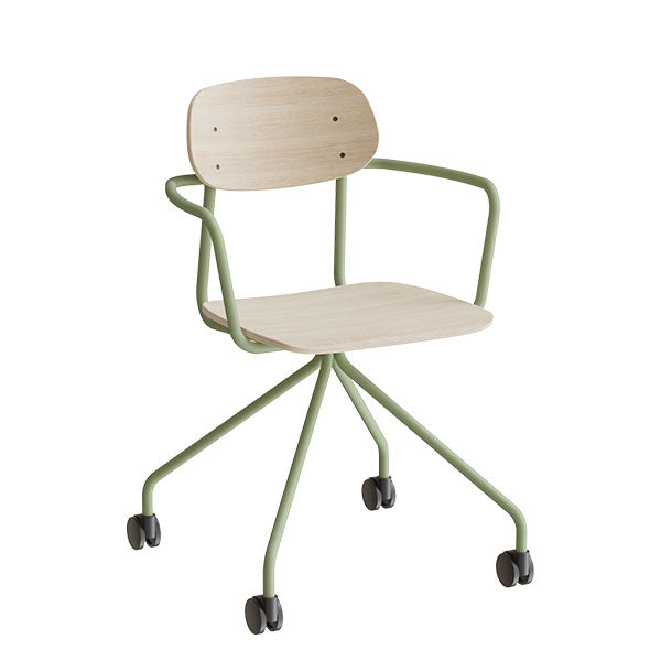 Stol Atlas 2112 på hjul, hvidpigmenteret egelaminat, grønt stel