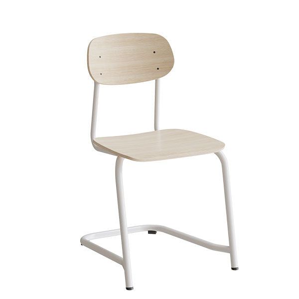 Sæde og ryg er beklædt med højtrykslaminat i hvidpigmenteret eg.