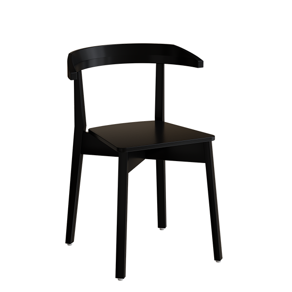Stol Elin i sortbejdset massiv birk som både kan stables og hænges op. En populær stol til bl.a. kantine og grupperum.