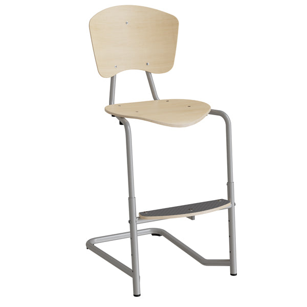 - Velegnet til højborde i undervisnings- og kantinemiljøer samt projektområder. - Fodpladen giver stabil fodstøtte og aflaster benene ved længere siddetid. - Birk finér er slidstærkt og let at rengøre, mens det alugråt stel sikrer god stabilitet.