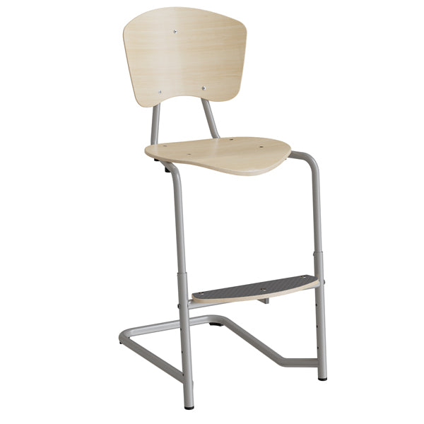 Velegnet til undervisningsrum, værksteder og andre miljøer med højborde, hvor fodpladen giver stabil støtte og bedre siddestilling. Birk laminat er slidstærkt og let at rengøre, hvilket passer til intensiv daglig brug. Det alugrå metalstel giver høj stabilitet og lang holdbarhed.