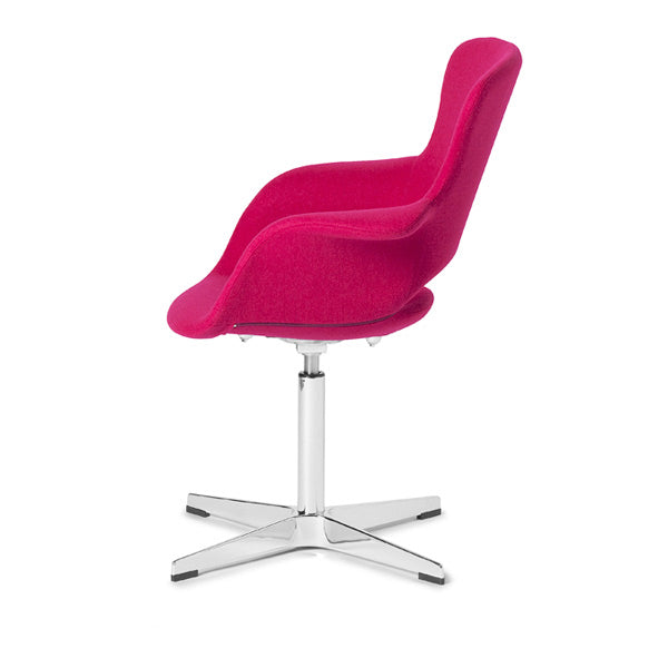 Velkommen til Monaco! Med sine iøjnefaldende farver vil Monaco være et populært og farverigt indslag i ethvert rum. Stolesædet er med helstøbt PU-kerne, helbetrukket med slidstærkt tekstil bestående af 30% uld og 70% polyester, og leveres på et forkromet, drejeligt understel med benkryds.