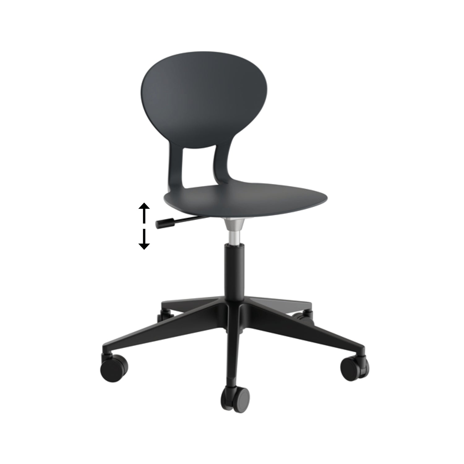 Stol Rocka 3079M med stilbar højde 450-580 mm på sort drejestel og med Medium siddeskal i sort polyuretan.Stolens sæde og ryg er formet i et stykke, hvilket giver en naturlig og dejlig støtte i ryggen. Rocka 3079 fås til både børn og voksne.