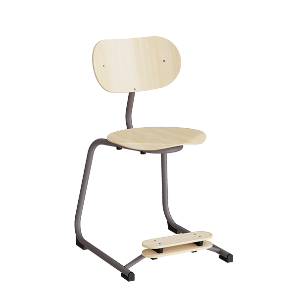 Stol Smile 3701 med formpresset sæde og ryg, belagt med birk laminat. Lakkert stålstativ med gulvbeskyttelse i filt. Justerbar fodplade i massiv løn, som er let at flyttte uden værktøj. Stolryggen er udformet således at den også kan benyttes til taskeophæng. Anbefales som elevstol på mellemtrinnet.Specifikationer: