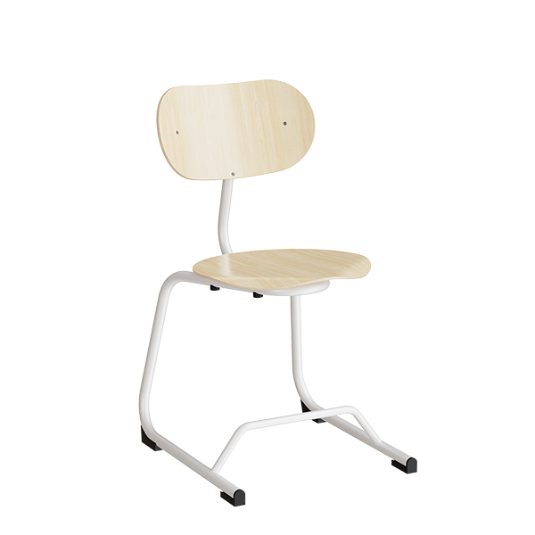 Stol Smile 3701 med formpresset sæde og ryg, belagt med birk laminat. Lakeret stålstel med gulvbeskyttelse i filt. Fast fodstøtte. Stolryggen er udformet således at den også kan benyttes til taskeophæng. Anbefales som elevstol til ungdomsskolen.Specifikationer: