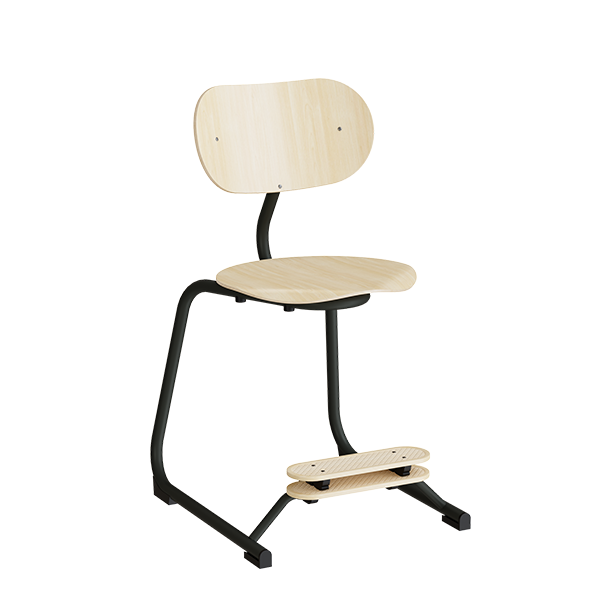 Stol Smile 3701 med formpresset sæde og ryg, belagt med birk laminat. Lakeret stålstativ med gulvbeskyttelse i filt. Justerbar fodplade i massiv løn, som er let at flytte uden værktøj. Stolryggen er udformet således at den også kan benyttes til taskeophæng. Anbefales som elevstol til folkeskolen.Specifikationer: