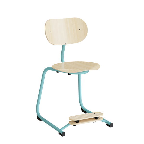 Sæde i birkelaminat er slidstærkt og nemt at rengøre, så stolen egner sig til daglig brug. Velegnet til spiseområder, møderum og undervisningsmiljøer, hvor funktion og enkel vedligeholdelse er vigtig. De turkise ben gør det let at farvekode zoner eller grupper og skabe tydelig visuel orden.