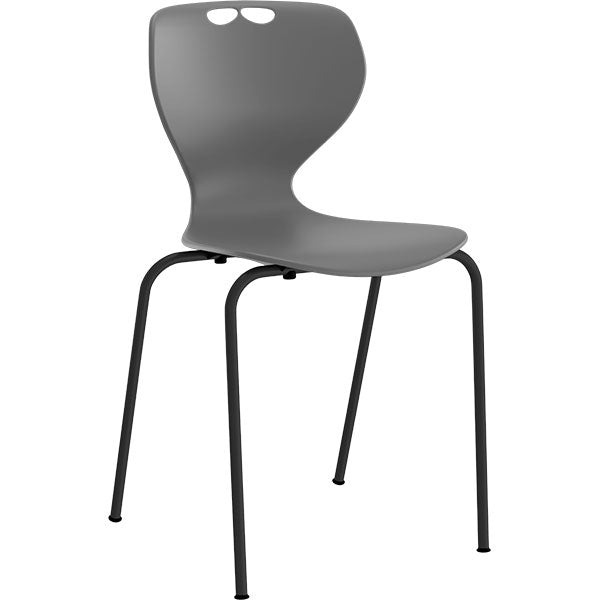 Elevstol Tarris med gråt sæde og med 4-ben understel, som er pulverlakeret i sort RAL9005.