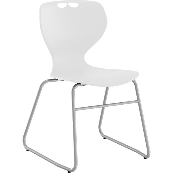 Elevstol Tarris med hvidt sæde og med lukket understel, som er pulverlakeret i alugråt RAL9006.