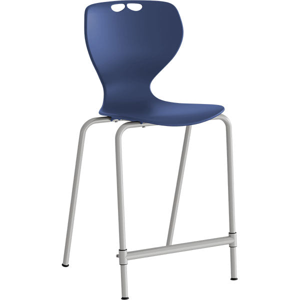 Elevstol Tarris Junior High med blåt sæde og med højt understel, som er pulverlakeret i alugrå RAL 9006.