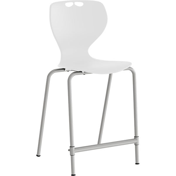 Stolen har en mindre siddeskal tilpasset de yngste elever, højt understel og justerbar fodpind for en god siddestilling.