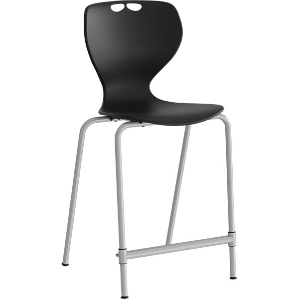 Elevstol Tarris Junior High med sort sæde og med højt understel, som er pulverlakeret i alugrå RAL 9006.