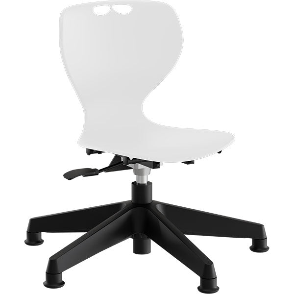 Elevstolen Tarris Junior med lille, hvidt sæde og sort, nylon hjulkryds med glidesko.