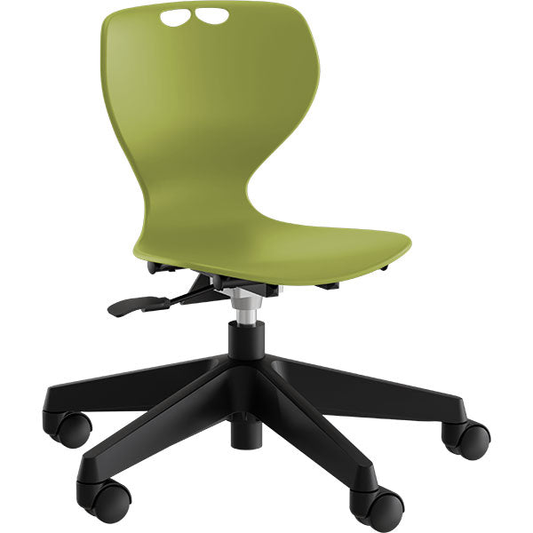 Elevstolen Tarris Junior med lille, olivengrønt sæde og sort, nylon hjulkryds.