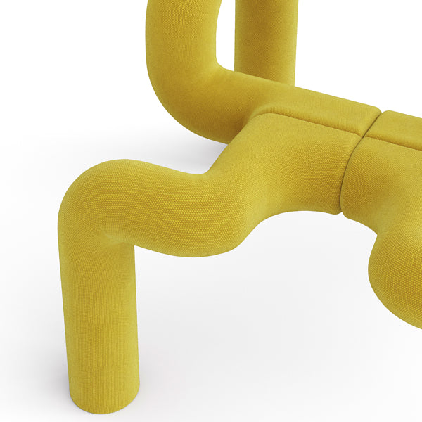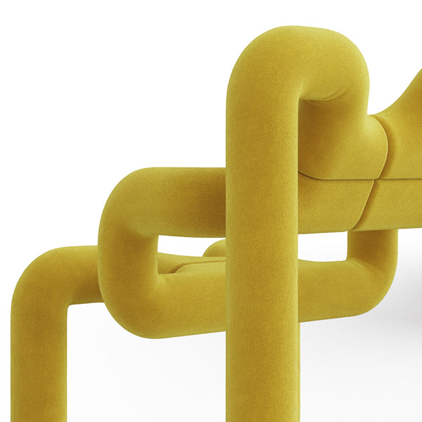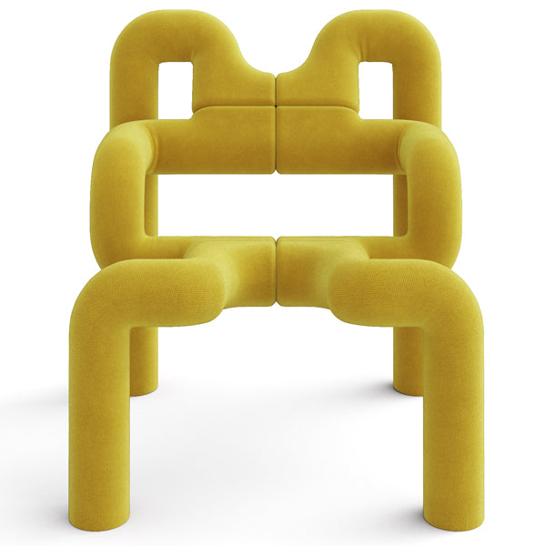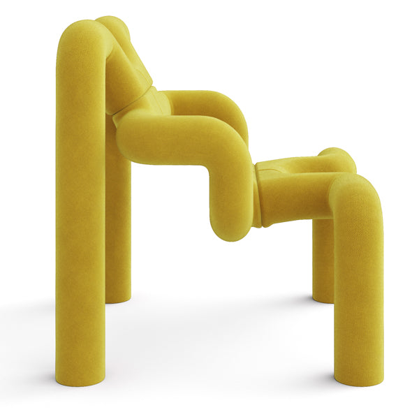 Stolen Varier Ekstrem er et design af Terje Ekstrøm fra 1984. Den giver et tilbageblik på formsproget i 80`erne, som udfordrer konventionelle møbler og som samtidig giver overraskende komfort. Den uventede geometri lader dig sidde forover med fødderne på gulvet eller sidevejs med benene let henslængt placeret på armlænene. Denne stolen leveres i gult Knit uld tekstil. Stolen er testet og godkendt til vægt op til 110 kilo.Specifikationer: