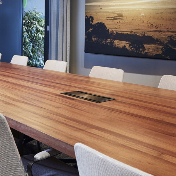 Bi-Box, her i lille størrelse, er kabelboks og kabelskjuler i ét. Låget kan let åbnes til to sider og har softclosing funktion. Bi-Boxen leveres i sort, har størrelse 118 x 300 x 150 mm og kan med fordel kombineres med et el-panel tilpasset dit behov. .