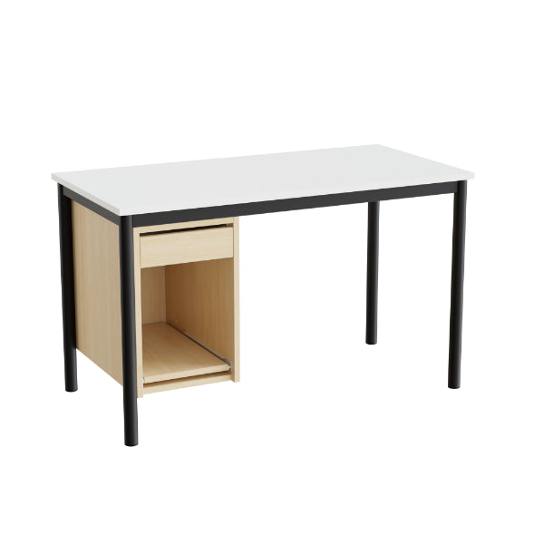 Sybord modell 135 med størrelse (b x d ) 1200 x 600 mm, miljøriktig pulverlakkerte sorte stålbein og hvit laminat bordplate.