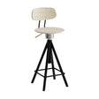 Taburet Atlas med ryg i lakeret stålstel og sæde belagt med højtrykslaminat i hvidpigmenteret eg. Hæve-sænkbar med gasregulering og vippefunktion for at få bedst mulig ergonomi. Passer godt til bordet i Atlas serien.