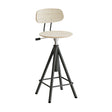 Taburet Atlas med ryg i lakeret stålstel og sæde belagt med højtrykslaminat i hvidpigmenteret eg. Hæve-sænkbar med gasregulering for at få bedst mulig ergonomi. Passer godt til bordet i Atlas serien.