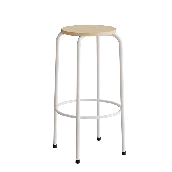 Taburet Bertil 117 med rundt sæde i diameter 330 mm i massiv birk. Stel i lakeret stål med fodring. Fødder leveres med gulvbeskyttelse i plast.