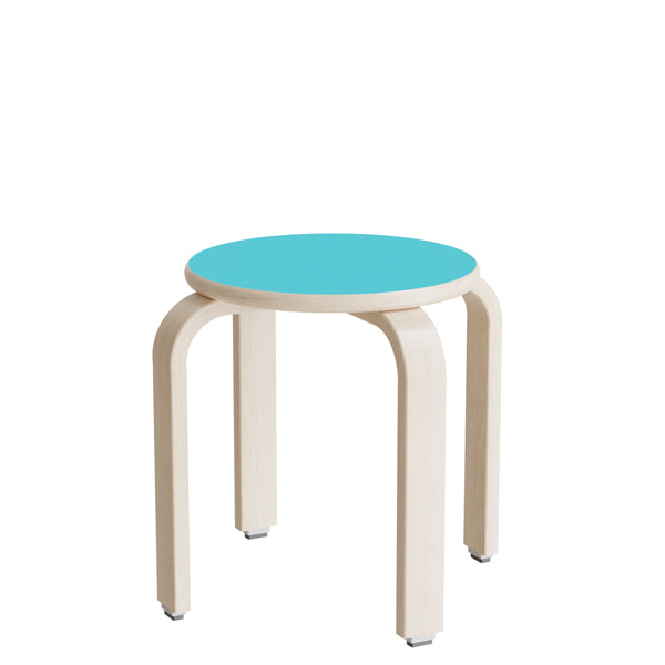 Taburet Oscar, 370 mm, sæde i turkis laminat, stel i hvidpigmenteret birkefinér er restordret og sendes så snart det er tilbage på lager.
