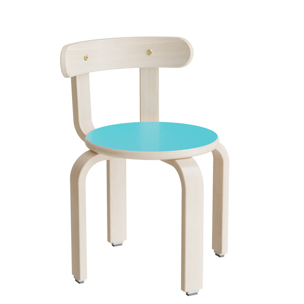 Taburet Oscar med ryglæn, 330 mm, sæde i turkis laminat, stel i hvidpigmenteret birkefinér er restordret og sendes så snart det er tilbage på lager.