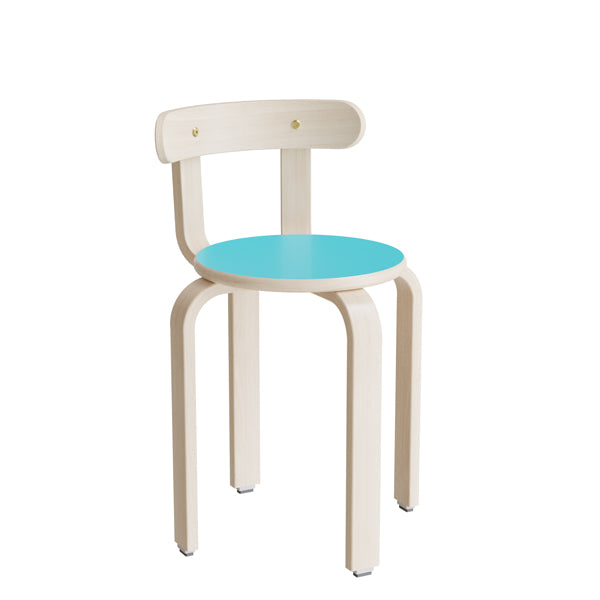Taburet Oscar med ryglæn, 440 mm, sæde i turkis laminat, stel i hvidpigmenteret birkefinér er restordret og sendes så snart det er tilbage på lager.