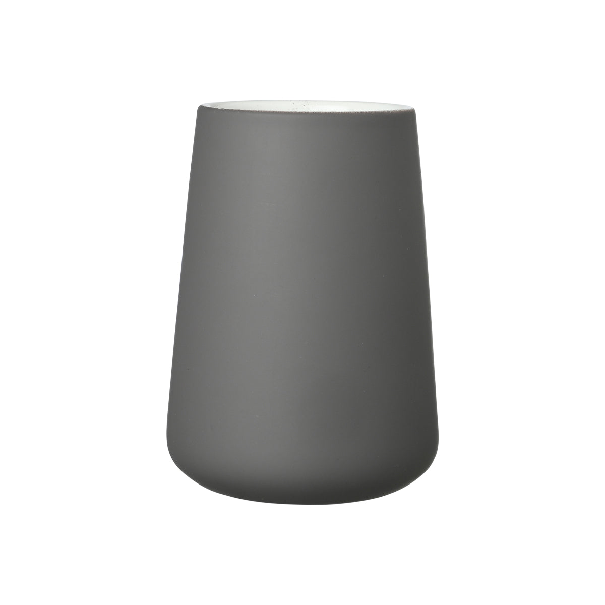 Elegant tandkrus i grå keramik fra Fjord-serien. Tandkruset er fremstillet i et minimalistisk design, inspireret af nordisk stil. Tandbørstekruset har en konisk form og en mat grå overflade, der giver et eksklusivt og moderne udtryk. Den hvide, glaserede inderside skaber en smuk kontrast.