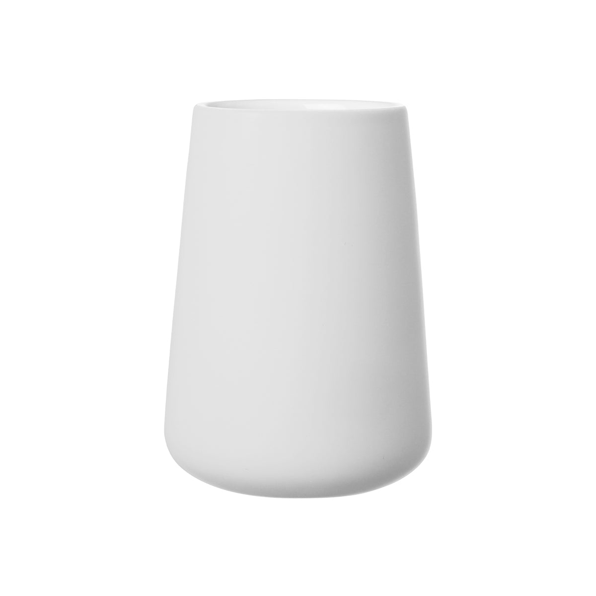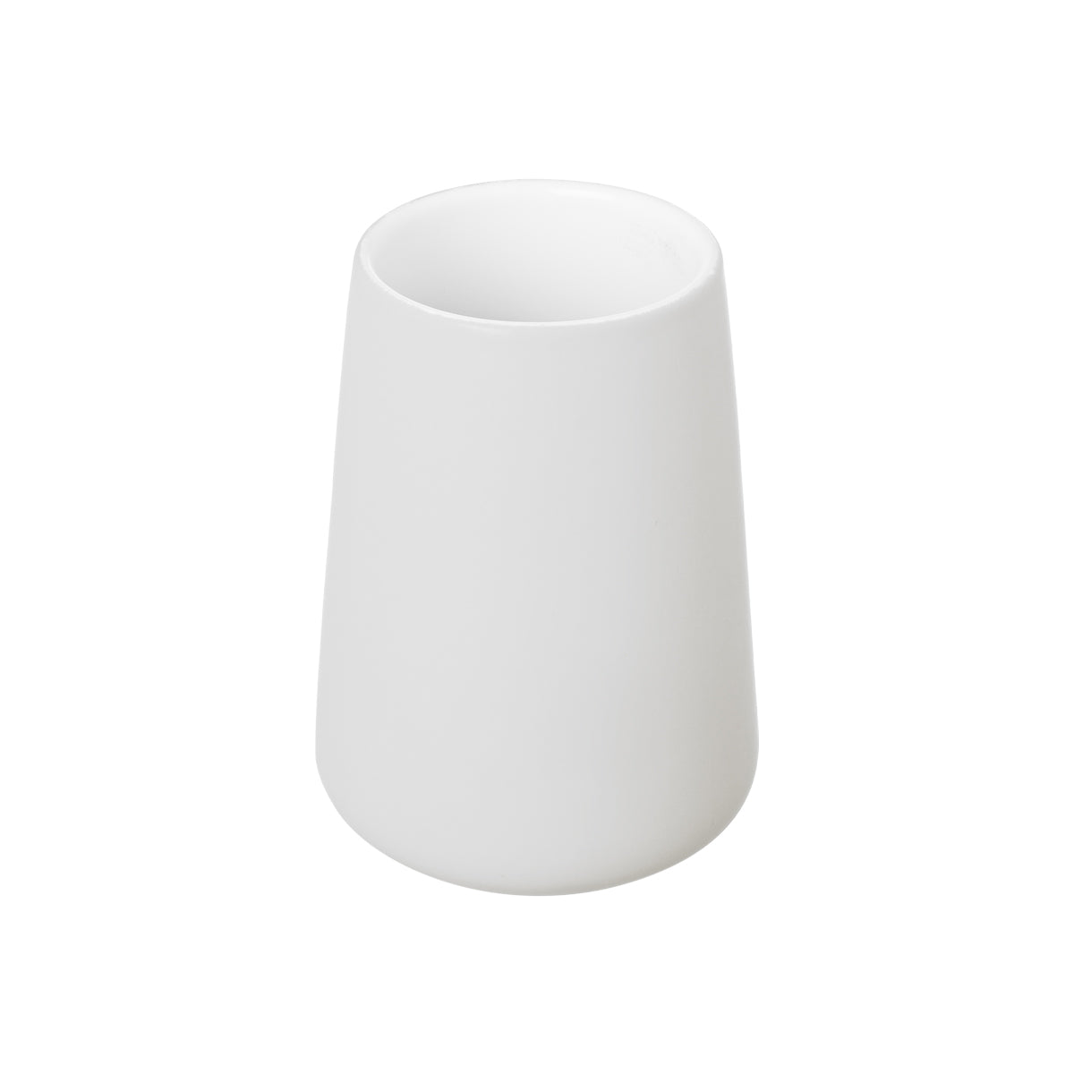 Elegant tandkrus i hvid keramik fra Fjord-serien. Tandkruset er fremstillet i et minimalistisk design, inspireret af nordisk stil. Tandbørstekruset har en konisk form og en mat hvid overflade og en hvid, glaseret inderside, der giver et eksklusivt og moderne udtryk.