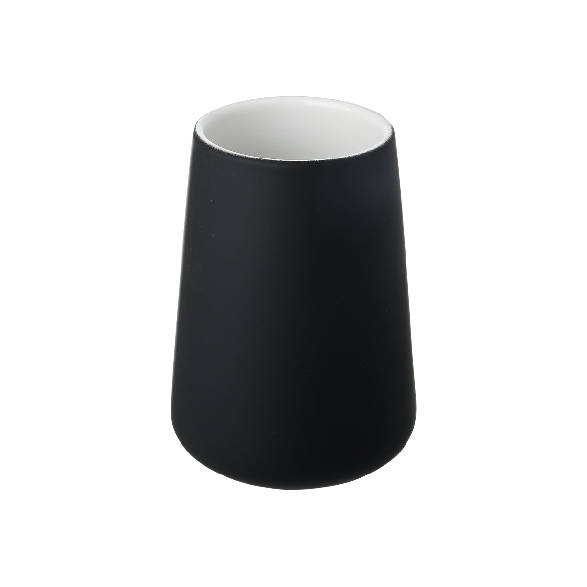 Elegant tandkrus i sort keramik fra Fjord-serien. Tandkruset er fremstillet i et minimalistisk design, inspireret af nordisk design. Tandbørstekruset har en konisk form og en mat sort overflade, der giver et eksklusivt og moderne udtryk. Den hvide, glaserede inderside skaber en smuk kontrast.