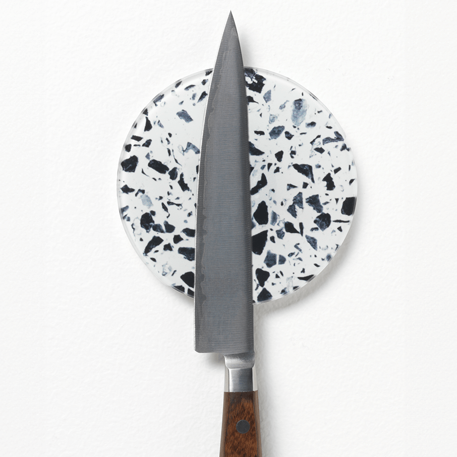 10 cm. NAGA nord Super Stærk Magnet, Mix Terrazzo glas Denne store magnet kan bruges til at holde knive, nøgler og andre metal ting på en magnettavle eller direkte på væggen. Du kan skrive på glasset med en kridt marker, eller med en almindelig whiteboard marker. Når teksten er tør, kan den nemt viskes ud igen. Brug en tavlesvamp eller en tør klud. Magneten leveres inkl. en dobbeltsidet selvklæbende sticker, hvis magneten skal monteres på væggen, samt en anti-slip selvklæbende sticker, som skal klæbes på magneten, hvis den skal bruges på en tavle. Denne vil sikre, at magneten ikke glider ned af tavlen. Tips til montering på væggen: Rengør overfladen godt inden montering. Fastgør magneten til væggen og tryk den ind i minimum 30 sekunder. Lad limen hærde i 24 timer inden brug. Leveres i gaveæske.Denne NAGA nord Super Stærk Magnet er både funktionel og dekorativ. Med sit Mix Terrazzo glas design, tilføjer det et unikt og praktisk touch til din indretning. Giv dit hjem eller kontor en moderne opdatering med denne brugervenlige og robuste magnet. Perfekt som gave til den praktiske og stilbevidste person.