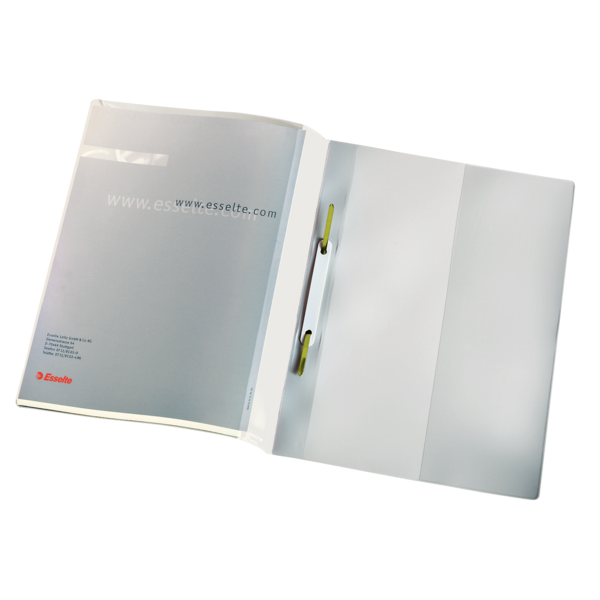 Denne tilbudsmappe er perfekt til arkivering og beskyttelse af hullede dokumenter. Den har en flad 8 cm metalmekanisme med 2 ben og plastik overligger. Omslaget er ikke-reflekterende og viser første side af dokumentet.